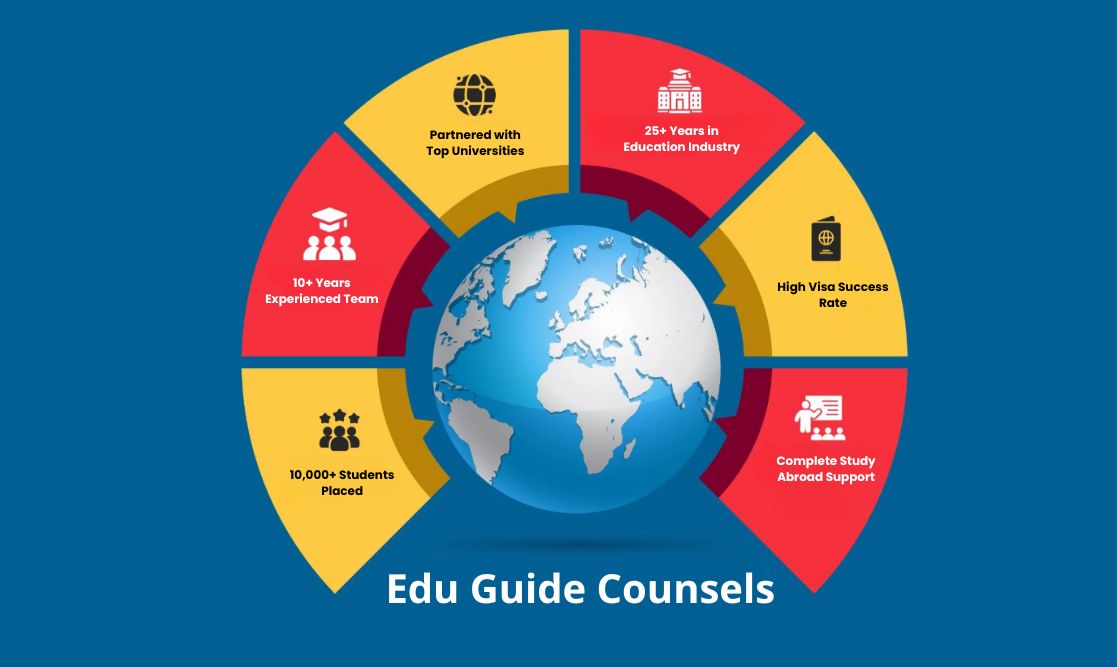 At EduGuide Counsels, we believe that every student deserves the right guidance to unlock global opportunities through quality education. Established in 2018 and headquartered in Ahmedabad, we are a leading overseas education consultancy committed to helping students achieve their study abroad dreams. With a rich experience of over two decades in international education services, our team has successfully guided students toward prestigious universities across the USA, UK, Canada, Australia, Europe, and beyond. From career counseling and university selection to visa assistance and pre-departure guidance — we provide a comprehensive, transparent, and student-first approach at every step of your global academic journey.